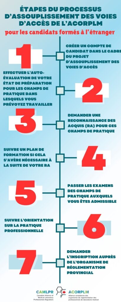R : Oui. La RA compare votre formation et votre expérience au Profil national de compétences. Vous pourriez être admissible dans certains champs et non dans d’autres. Lorsque des écarts sont relevés, l’ACORPLM peut attribuer un plan de formation (notre terme pour ce que certains appellent un programme de mise à niveau/rafraîchissement).